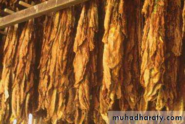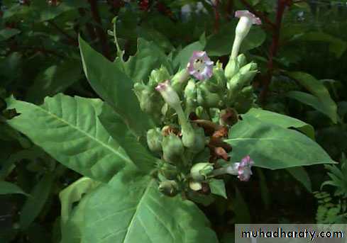 • Leaves of Nicotiana tobacum dried and (usually) smoked
