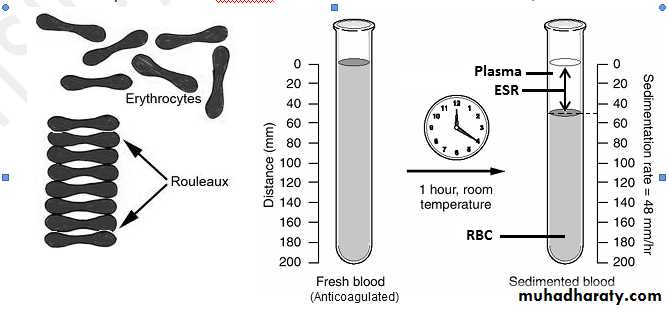 1. Plasma proteinsIncreased concentrations of fibrinogen or globulin & acute phase proteins (increased in acute inflammationor tissue injury)…….all increase aggregating ability, therefpore, increase rouleaux formation and increase ESR.
