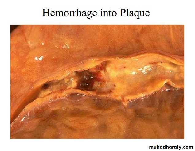 • Plaque rupture of superficial erosion followed by superimposed thrombus causing sudden luminal occlusion (e.g. MI).