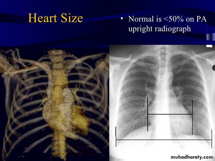 A CTR of greater than 1:2 (50%) is considered abnormal. This however, assumes the projection is Posterior-Anterior (PA), and that cardiac size is not exaggerated by factors such as patient rotation or an incomplete breath in .