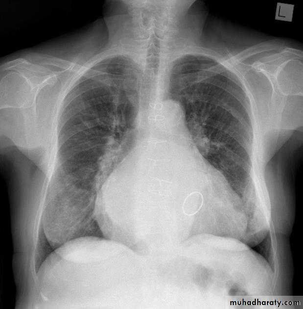 • 1.cardiomegaly (particularly left atrial enlargement although the right and left ventricle can also be enlarged).