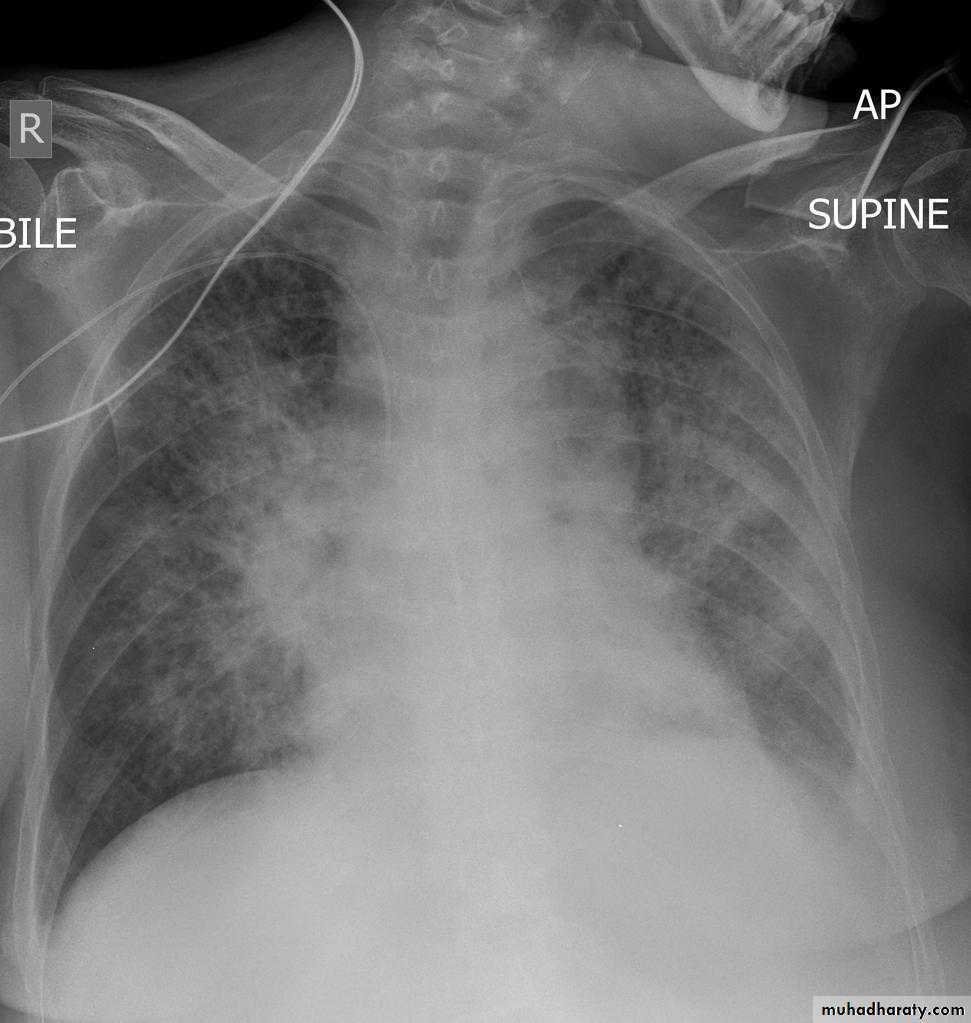 cardiac size/cardio-thoracic ratio: useful for assessing for an underlying cardiogenic cause or associationbat wing pulmonary opacities