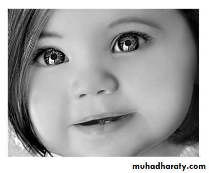 The mouth is kept open, and the thick, broad tongue protrudes. Dentition will be delayed.