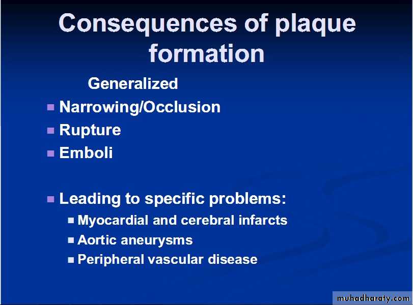 • Insidious narrowing of vascular lumens (e.g. gangrene of the lower leg because of stenosing atherosclerosis in the popliteal artery).