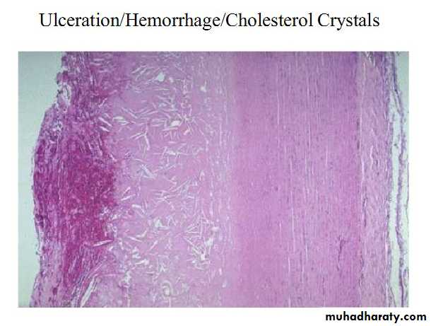 • Plaque rupture of superficial erosion followed by superimposed thrombus causing sudden luminal occlusion (e.g. MI).