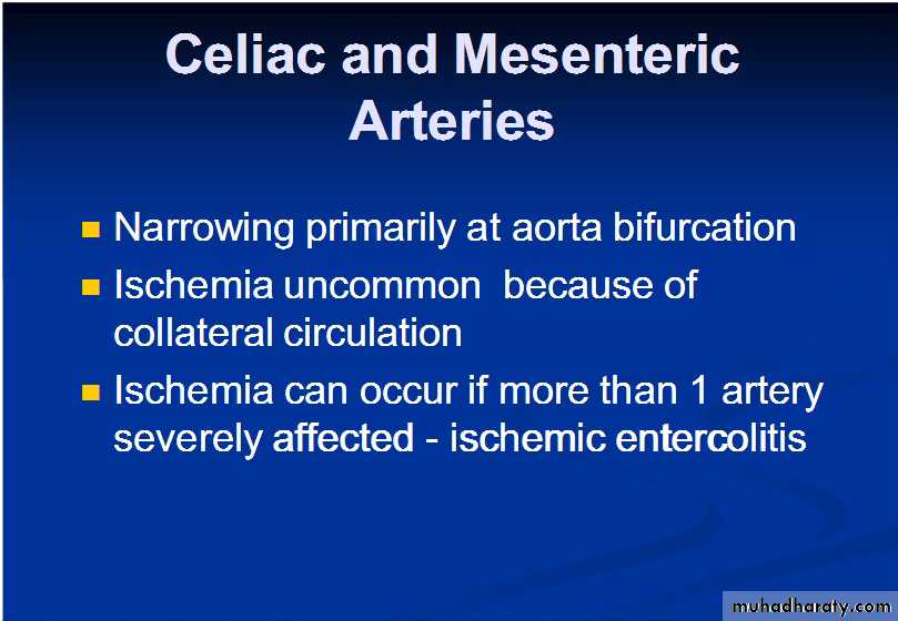 • Narrowing or complete obstruction of the lumen by atherosclerosis or thrombo-embolism respectively.