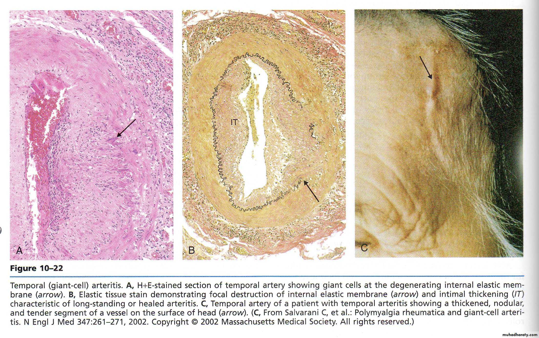 Biopsy specimens : necrotizing inflammation involving medium-sized or small arteries,with abundant neutrophils, fibrinoid changes, disruption of the internal elastic lamina