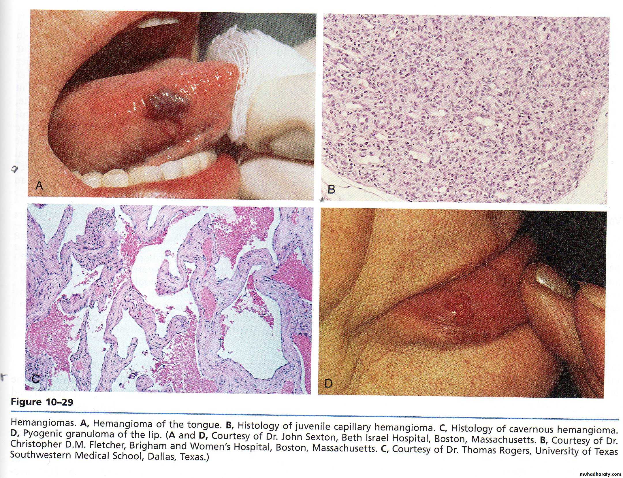 • Hemangiomas; Capillary. Cavernous. Pyogenic granuloma.