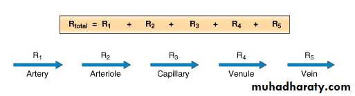 • If the resistance of one of the individual vessels in a parallel arrangement increases, then total resistance increases.