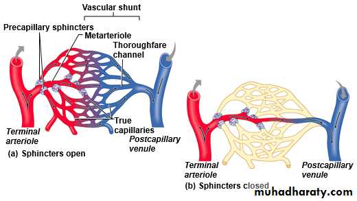 • The precapillary sphincters function like "switches": By opening or closing, these switches determine blood flow to the capillary bed.