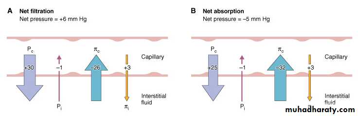 • Pc= 30 mmHg, Pi = 1 mmHg, πc = 26 mmHg, πi = 3mmHg