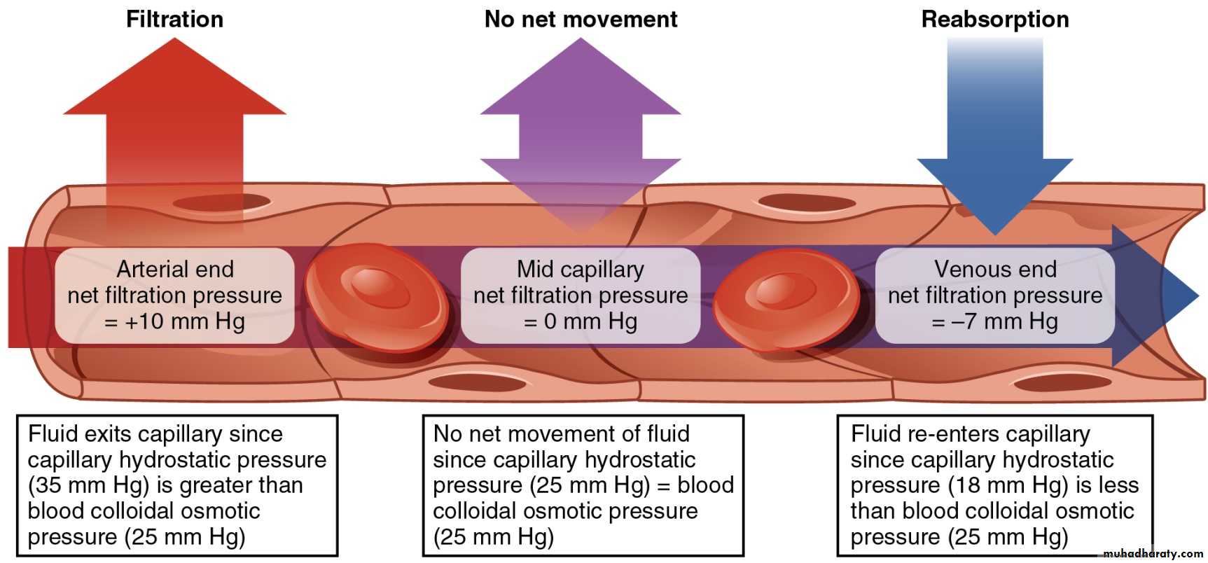 • Net pressure = +30 - 1 -26 + 3 mm Hg = +6 mm Hg