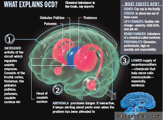 Neurochemical Dysregulation of the 5HT system, or 5HT/DA interaction.Immunological Cell-mediated autoimmune factors may be associated (e.g. against basal ganglia peptides_as in Sydenham’s chorea).