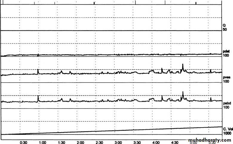 -UMNL : reduced capacity , involuntary detrusor contraction , high intravesical detrusor pressure , spasticity of pelvic striated M. , autonomic dysreflexia in cervical cord lesions-LMNL : large bladder capacity, lack of voluntary detrusor contraction, low intravesical pressure, deceased tone in external sph.