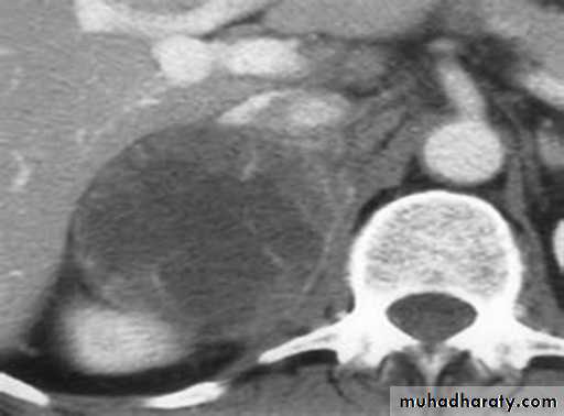 Approximately 60% of patients present with evidence of steroid hormone excess (Cushing’s syndrome).Patients with nonfunctioning tumours complain of abdominal or back pain caused by large tumours.