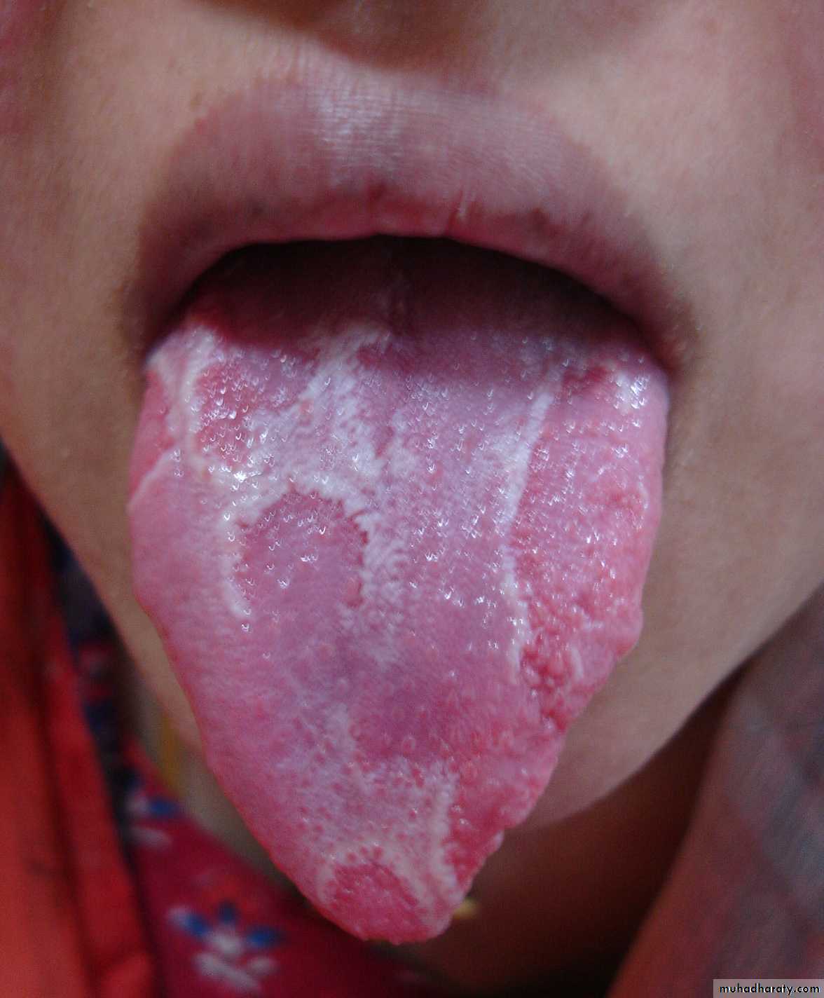 Surface furrowing of tongue (a geographic or scrotal tongue) is usually a normal finding.