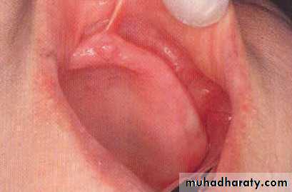 Labial Frenum: The labial frenum is a narrow fold of oral mucosa, which is found in the approximate midline. It extends from the inner surface of the lip to the labial surface of the alveolar ridge. The labial frenum is not a reliable guide for determining the midline of the face when natural teeth are absent.