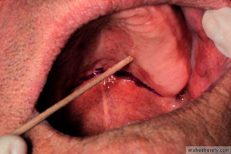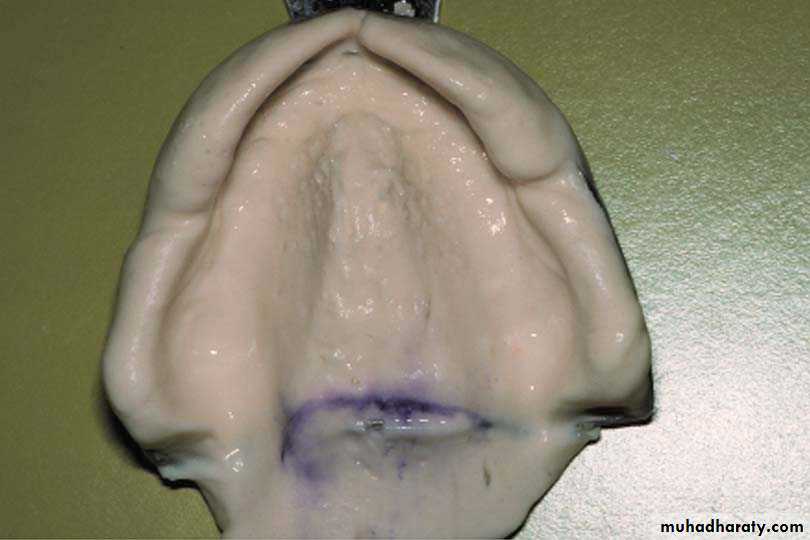 The medial palatine raphe is a slight tissue elevation which occurs in the midline of the hard palate, immediately over the median palatine suture.May require relief when covered by a denture.