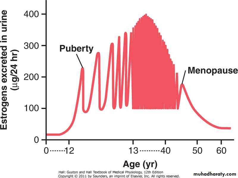 During childhood, estrogens are secreted only in minute quantities, but at puberty, the quantity secreted in the female under the influence of the pituitary gonadotropic hormones increases 20-fold or more. At this time, the female sex organs change from those of a child to those of an adult. The ovaries, fallopian tubes, uterus, and vagina all increase several times in size. Also, the external genitalia enlarge, with deposition of fat in the mons pubis and labia majora and enlargement of the labia minora.In addition, estrogens change the vaginal epithelium from a cuboidal into a stratified type, which is considerably more resistant to trauma and infection than is the prepubertal cuboidal cell epithelium. Vaginal infections in children can often be cured by the administration of estrogens simply because of the resulting increased resistance of the vaginal epithelium.