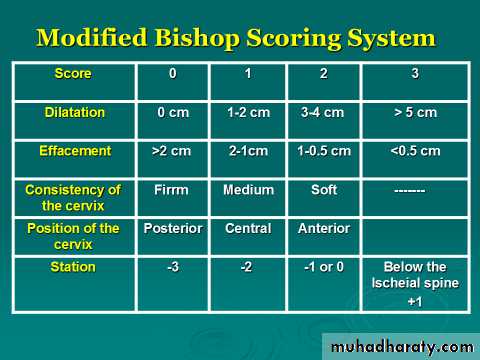 This score is predicting for the succession of induction of labour.The total score is in the range of 0-13, a score of 9 or more is favourable for successful induction.
