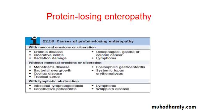 Abdullah AlyouzbakiThe diagnosis can be confirmed by measurement of faecal clearance of α1-antitrypsin or 51Cr-labelled albumin after intravenous injection. Other investigations should be performed to determine the underlying cause.