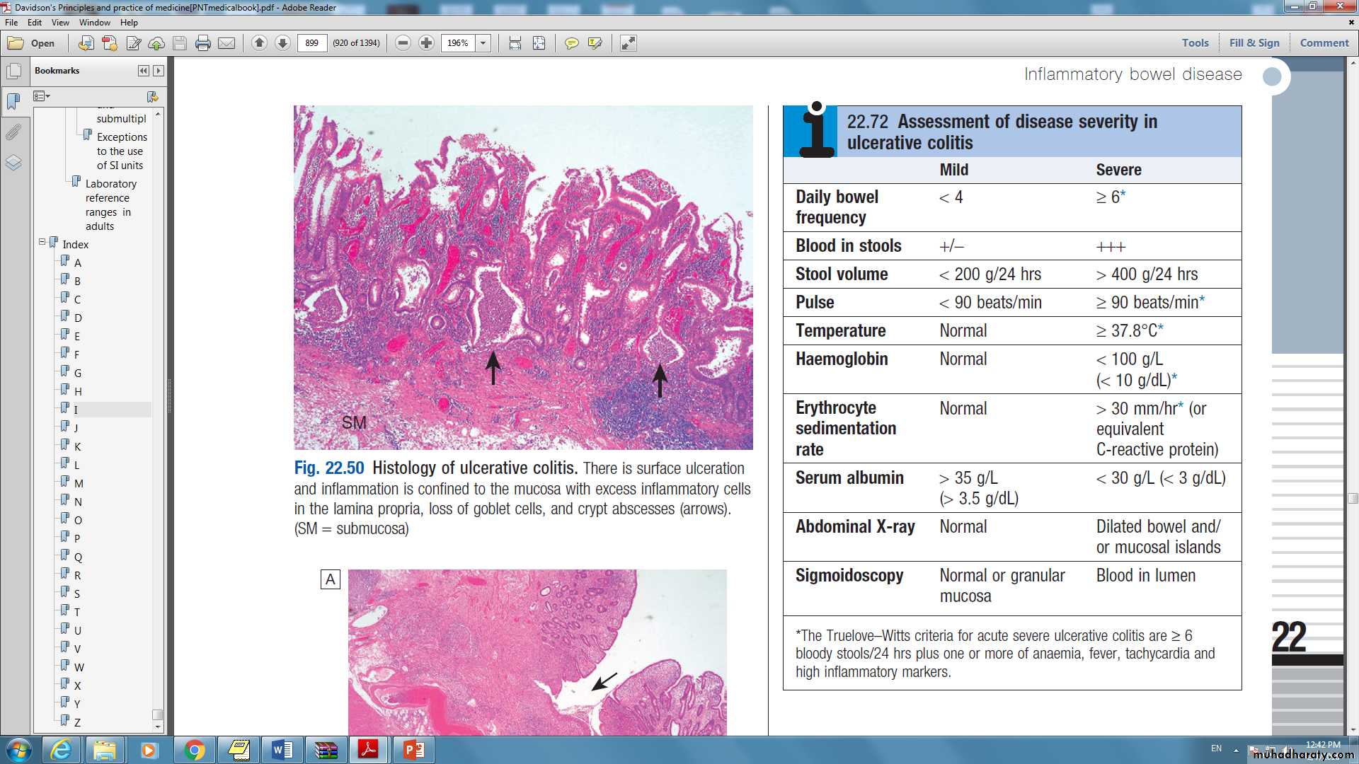 Life-threatening colonic inflammation:This can occur in both ulcerative colitis and Crohn’s colitis. In the most extreme cases, the colon dilates (toxic megacolon) and bacterial toxins pass freely across the diseased mucosa into the portal and then systemic circulation.