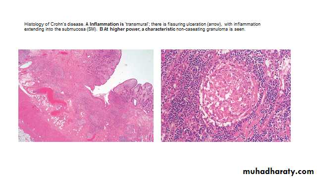 Crohn’s disease has a patchy distribution and the inflammatory process is interrupted by islands of normal mucosa.