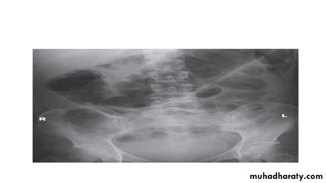 A plain abdominal X-ray is essential in the management of patients who present with severe active disease. Dilatation of the colon , mucosal edema (thumb-printing) or evidence of perforation may be found.