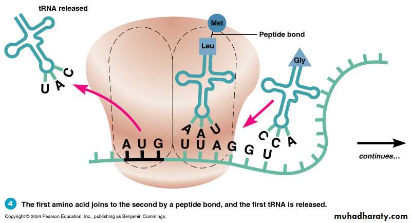The 1st tRNA is released.Translation : Elongation