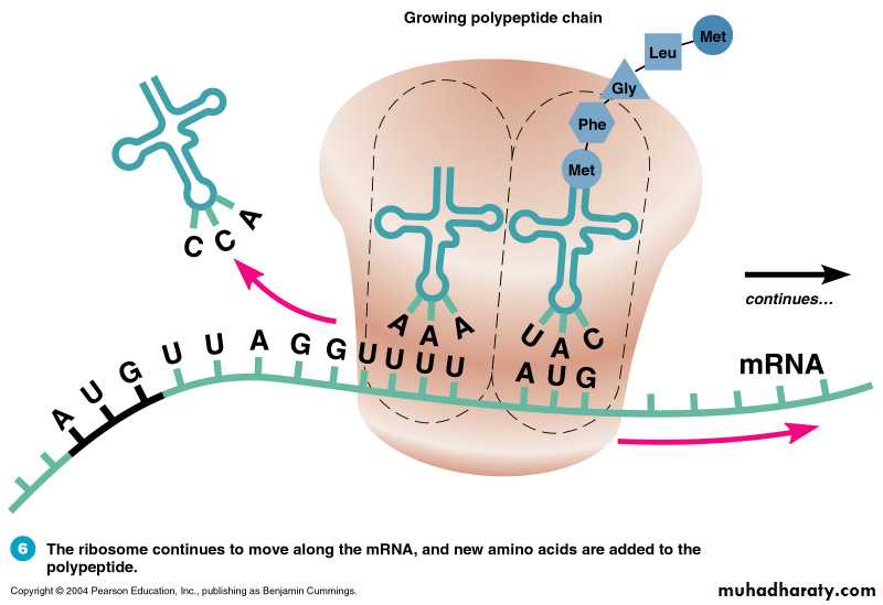 As ribosome continues to move along the mRNA, new amino acids are added to the polypeptide.