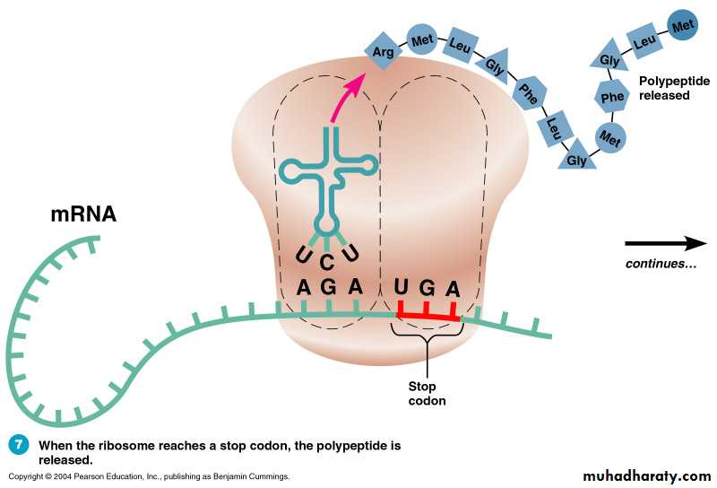 When the ribosome reaches a stop codon, the polypeptide is released.