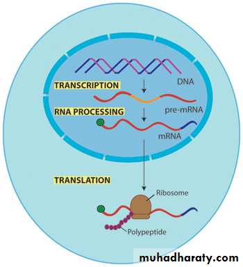 transcription translation• Transcription and processing of the newly made mRNA occurs in the nucleus of the cell.