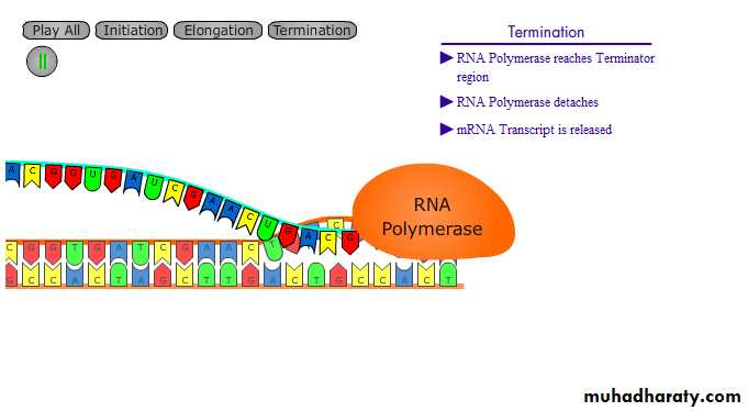 RNA polymerase detachesmRNA Transcript is released