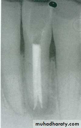 Narrow and conservative access opening: results of:Root canal debridement and obturation not sufficient.