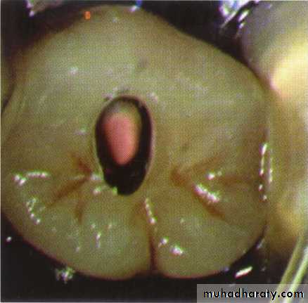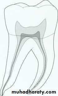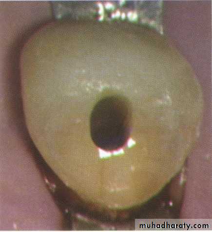 Entrance in molar teeth: Should be limited to the mesial half of the occlusal surface since pulp chamber located there, most of pulp chamber occupy mesial half of the crown, so there is no need to go so far distally→ sacrificing tooth structure.