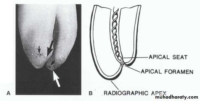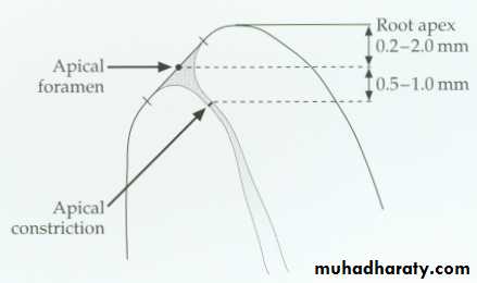 most apical part of the root is 0.2-2.0 mm. The constrictioncan be 0.5-1.0 mm from the apical foramen.