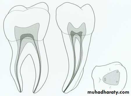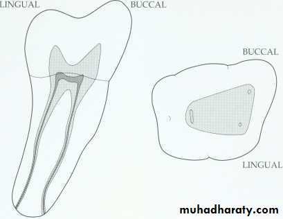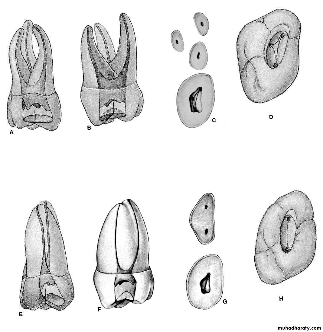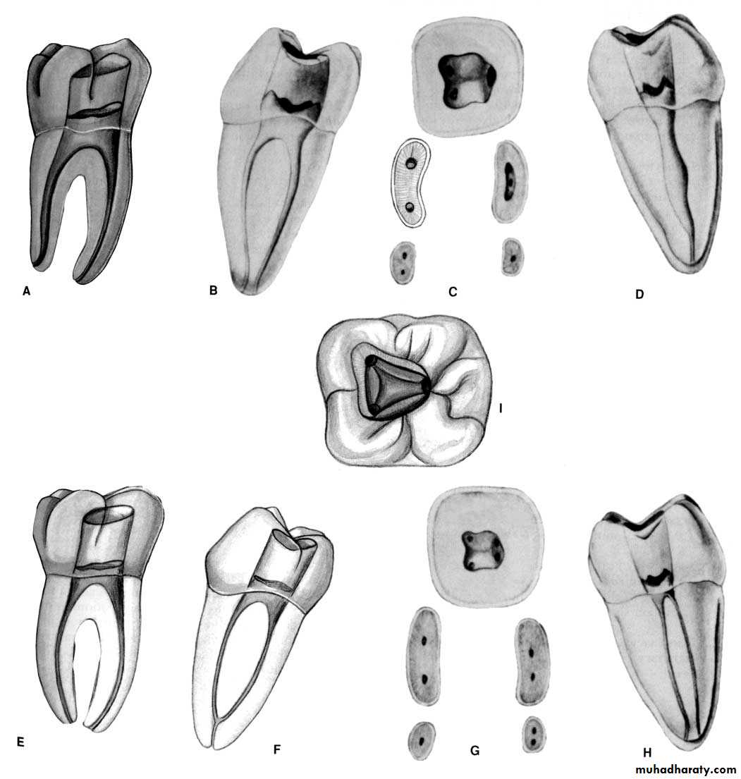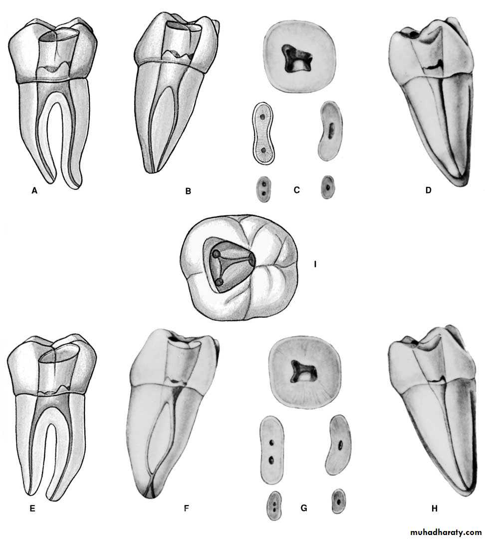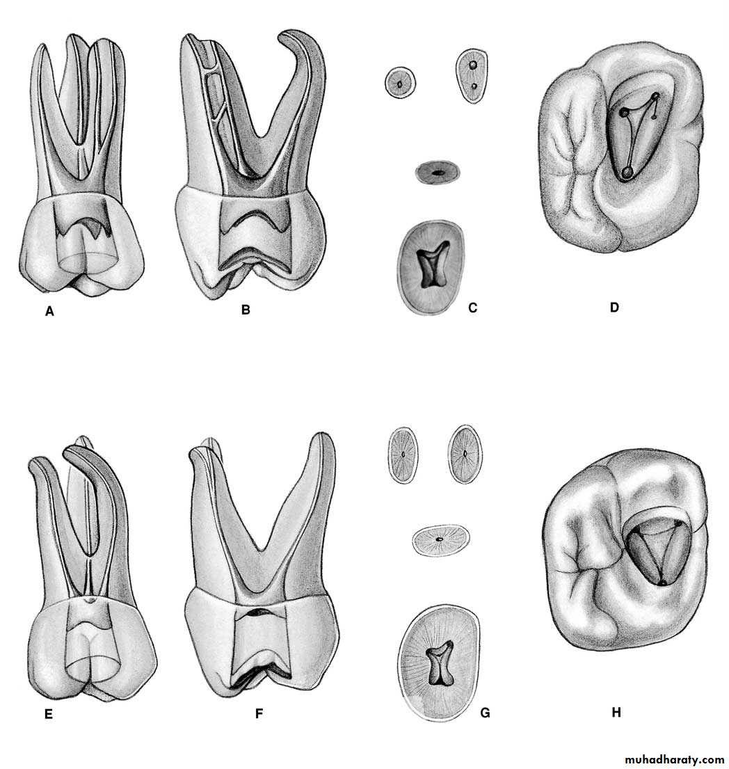 * The incidence of two distal canals has been reported as 38%.*the pulp chamber is wider mesially than it distally &may have five pulp horns.
