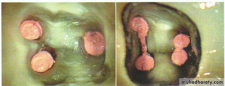 * Fourth canal (55-74% of teeth) located in the mesiobuccal root.Canal configuration is usually type II or type IV in mesiobuccal root