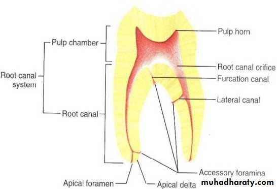 Major anatomic components of the pulp cavity.