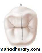 2-Shape of Pulp Chamber: The finished outline form should accurately reflect the shape of the pulp chamber. For example, the floor of the pulp chamber in a molar tooth is usually triangular in shape, owing to the triangular position of the orifices of the canals. This triangular shape is extended up the walls of the cavity and out onto the occlusal surface; hence, the final occlusal cavity outline form is generally triangular .