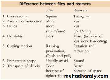 wire, which is grounded into desired shape.• Tighter twisting of the file spirals increases the number of flutes in files (more than reamer).• Triangular cross-sectioned files show superior