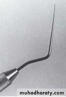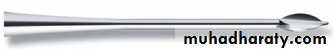 "larger than conventional excavator" its shape allows curettage of the pulp chamber when conventional one will not reach the floor of the chamber, and used as surgical aid to excavate periapical lesion.Instruments for root canal preparation