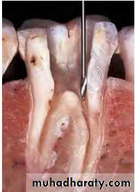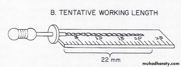The braded broach comes in different sizes, and the selection of suitable size is very important, it should fit loosely inside the canal, when braded broach size is larger than the canal size, the hooks of B.B engaged in the dentinal wall of the canal and stick there "Jammed broach" and with drawing it becomes difficult and might fracture inside the canal, if the dentist faced by Jammed broach, the broach should be removed vertically without twisting. The B.B must only be used in the straight part of the canal.