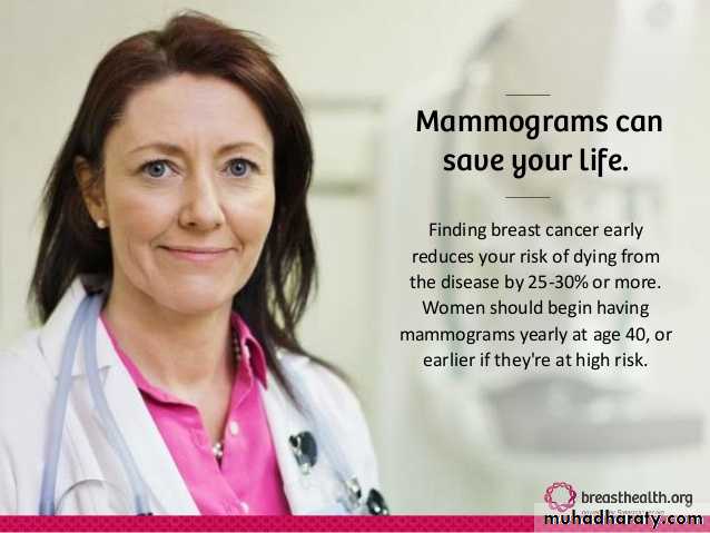 Screening mammography is the type of mammogram that checks you when you have no symptoms. It can help reduce the number of deaths from breast cancer among women ages 40 to 70. But it can also have drawbacks. Mammograms can sometimes find something that looks abnormal but isn't cancer. This leads to further testing and can cause you anxiety. Sometimes mammograms can miss cancer when it is there. It also exposes you to radiation. You should talk to your doctor about the benefits and drawbacks of mammograms. Together, you can decide when to start and how often to have a mammogram.