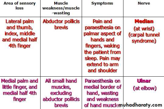WEAKNESS & ATROPHY OF THENAR MUSCLES