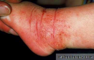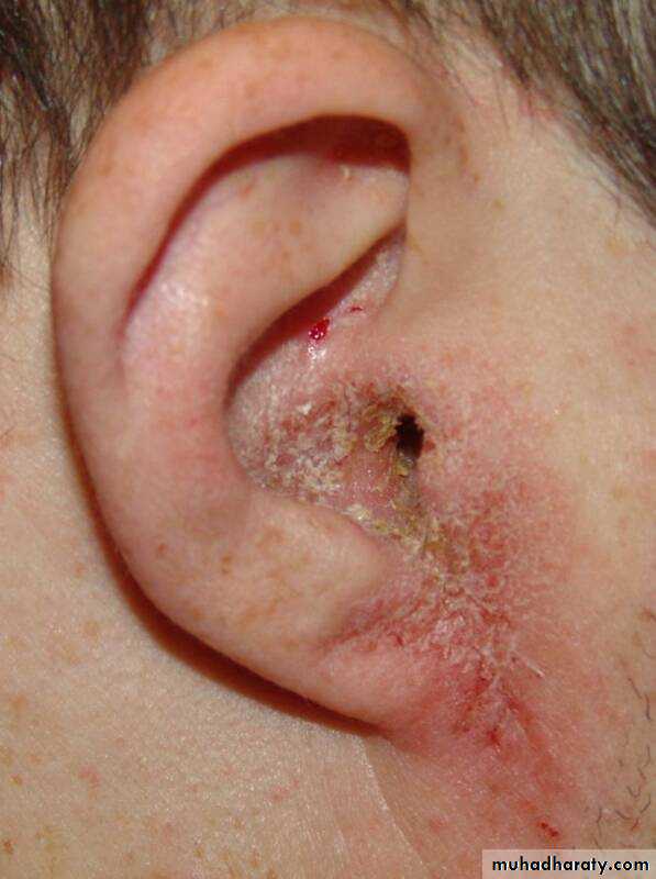 What is your advice to this elderly man who suffered from sore erythematous skin lesion with multiple superficial cracks?