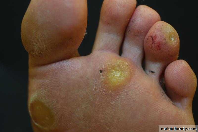 These are two common painful sole lesions. What are their names? How do you differentiate between both conditions?