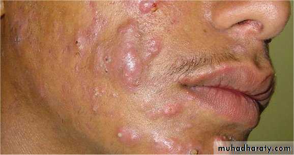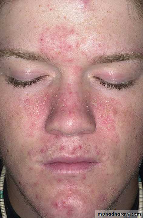 These are the sites of predilection of common facial problem. What is your provisional diagnosis? Where else in the body you may see the disease?