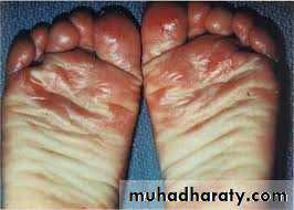 What is the name of the affected site of the soles? What is the main cause of her problem? What is your provisional diagnosis?