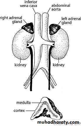 The two adrenal glands, lie at the superior poles of the two kidneys, each gland is composed of two distinct parts, the adrenal medulla and the adrenal cortex. The adrenal medulla, the central part of the gland, is functionally related to the sympathetic nervous system; it secretes the hormones epinephrine and norepinephrine in response to sympathetic stimulation. In turn, these hormones cause almost the same effects as direct stimulation of the sympathetic nerves in all parts of the body.